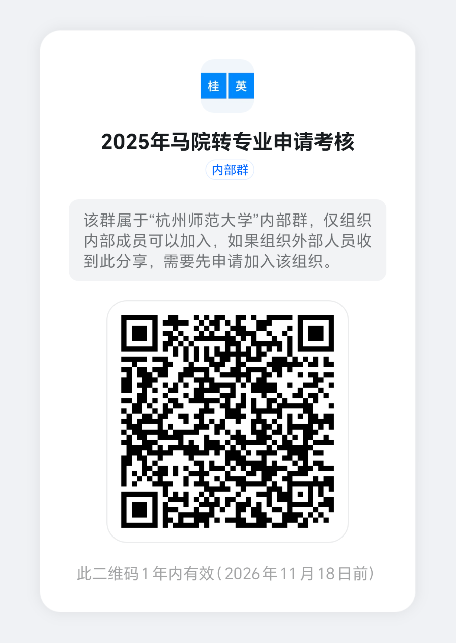 各位同学,根据学校2025年转专业的总体安排,结合博彩导航 实际,请拟申请转专业学生根据以下博彩导航 转专业考核方案及考核安排来操作。报名需提交转专业申请表纸质材料,提交地点:下沙校区行政楼212,仓前校区恕园26-304。系统报名成功的学生请加入马院转专业通知钉钉群,二维码: